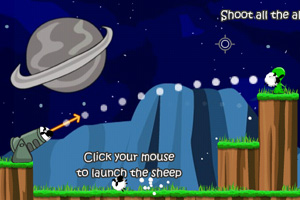 绵羊大战外星人小游戏介绍:外星人又来偷小绵羊了,这次绵羊们决定主动出击,通过大炮发射将外星人赶走,相信你一定能帮助小羊们完成任务。