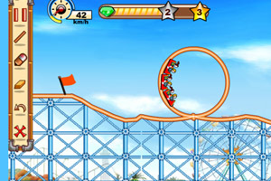 过山车达人第二部来啦!这款游戏非常有意思,目的就是要你设计出最酷的过山车,游戏画面设计的十分精良,非常值得玩一下。你需要用鼠标画出过山车的轨道,目标是要成功开出过山车、收集画面中所有钻石,然后顺利的到达终点,设计中可以用不同的特制路轨来完成。