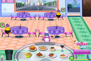 纽约企鹅餐厅小游戏介绍:小企鹅在纽约开了一家餐厅。你能帮助他经营好餐厅吗?
