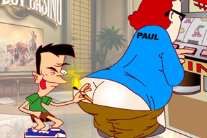 恶整大屁股小游戏介绍:欧吉桑保罗臭屁不止,小舍曼忍无可忍,他人为必须找点东西塞到他屁股里!