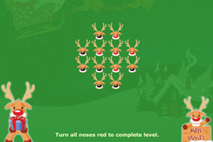很有意思的小游戏,驯鹿应该都是红鼻子的,但是这些驯鹿全是黑色,你要把所有的驯鹿鼻子变成红的就可以过关啦。