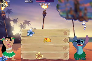 在花朵到达的时候,点击相应的键盘方向键控制史迪奇跳草裙舞。