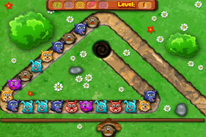 动物祖玛小游戏介绍:一款可爱的动物 祖玛 游戏,在小动物们逃回洞里之前将它们都消掉吧。
