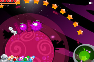能源博士无敌版小游戏介绍:控制机器人在星球上打怪物,五种颜色枪分别对应消灭相同颜色的怪物。游戏的惯性很大,需要适应一下哦,挑战最高难度。